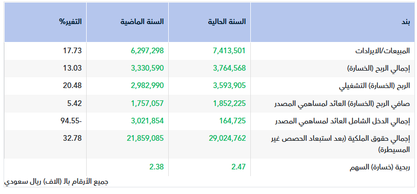 | جميع الأرقام بالـ (الاف) ريال سعودي | |||